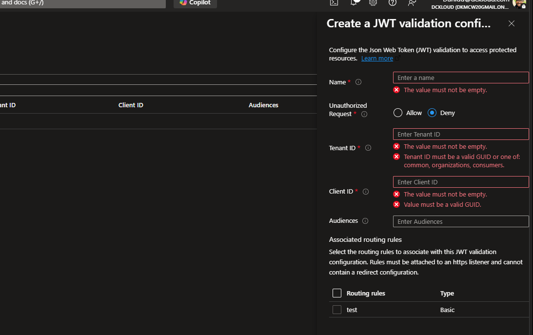 Important Note: As of this preview, Application Gateway JWT validation only supports tokens from standard Microsoft Entra ID (workforce) tenants. It does not currently support Entra External ID (CIAM) tenants for customer-facing apps. For customer scenarios, you’ll still need to handle JWT validation in APIM or your backend.